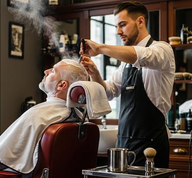 Traditional Men's Haircut + Beard(Hot Towel)---$55 & up